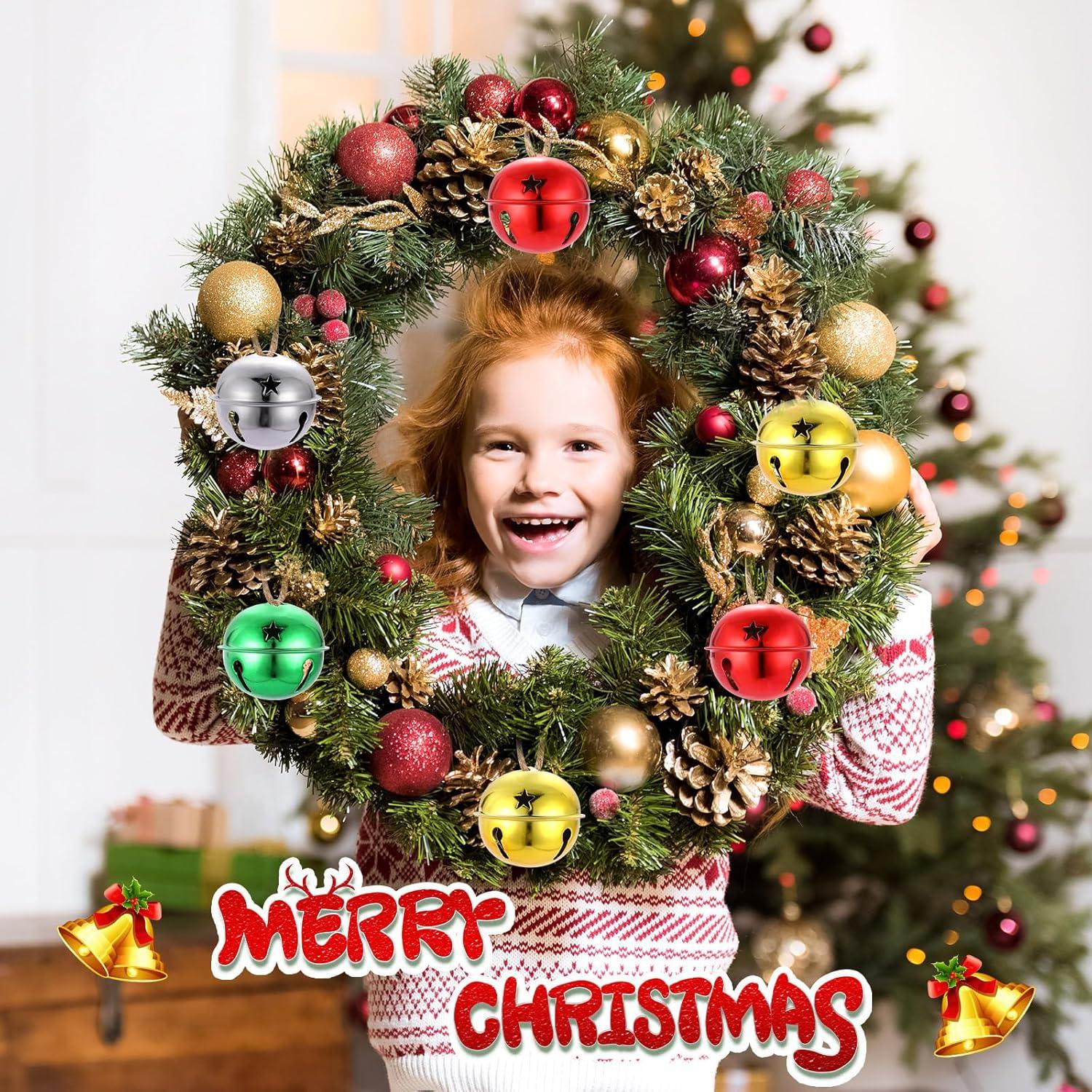 Zubebe 12 Pcs Christmas Bells Jingle Bells Large 2.5 Inch Star Cutout Ornament for Crafts Christmas Tree Decor Gift Wrapping (Matte Red,Green,Gold,Silver)(Glossy Red Green Gold Silver)