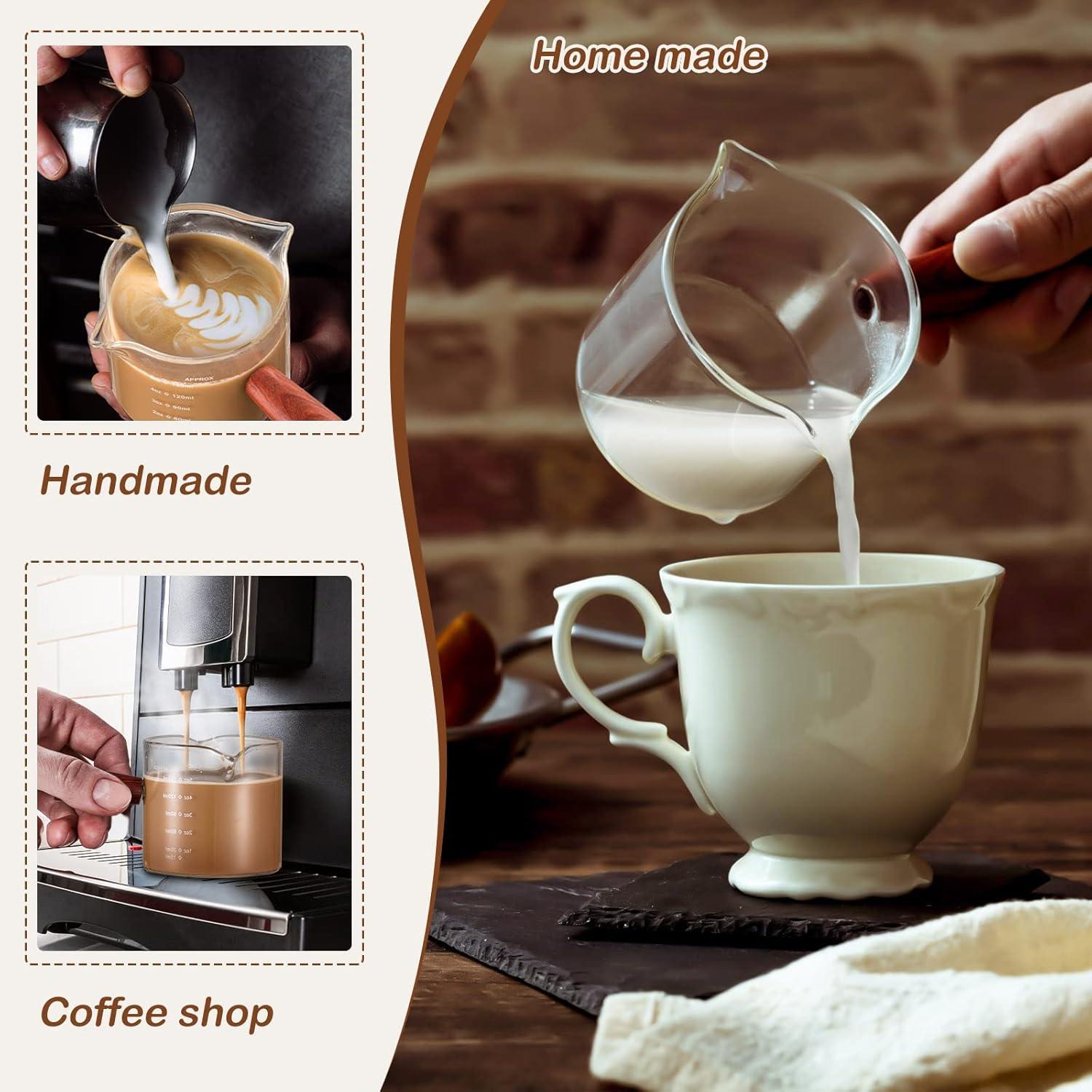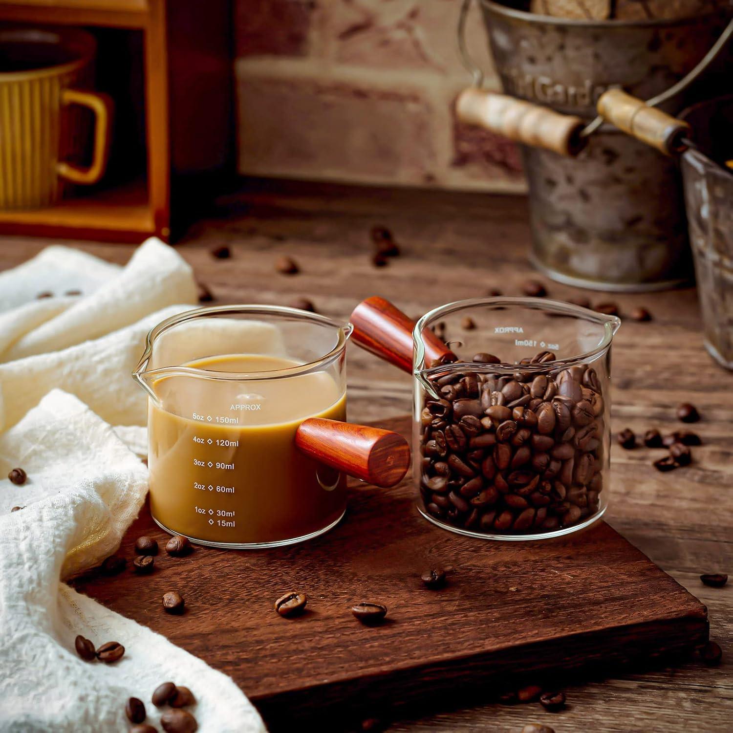 Durable to Use: the espresso measuring cup is made of quality glass, high temperature resistant, high hardness, strong and sturdy, has a long service life; And the handle is made of wood material, reliable and durable, comfortable to hold and not easy to slip off