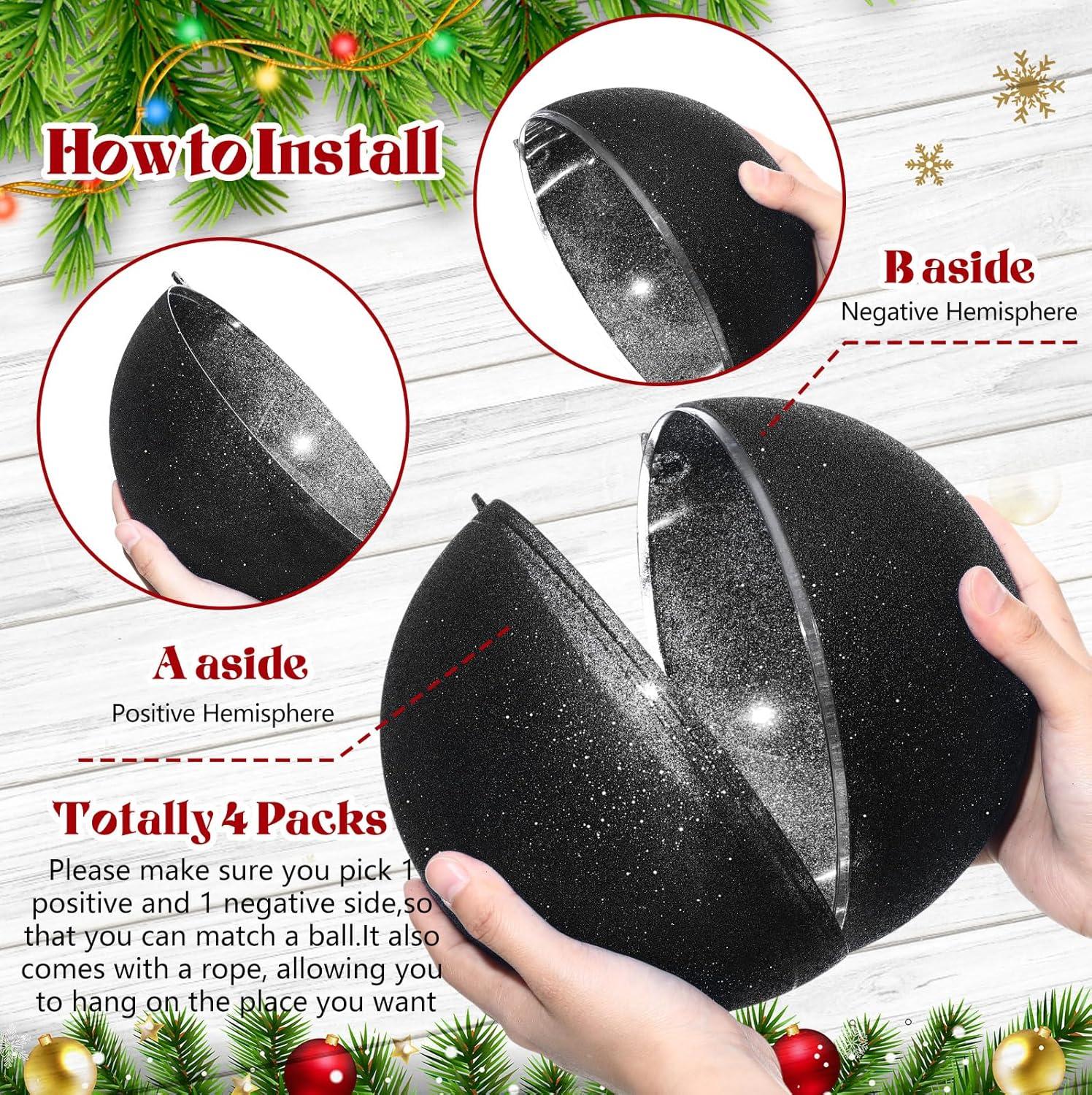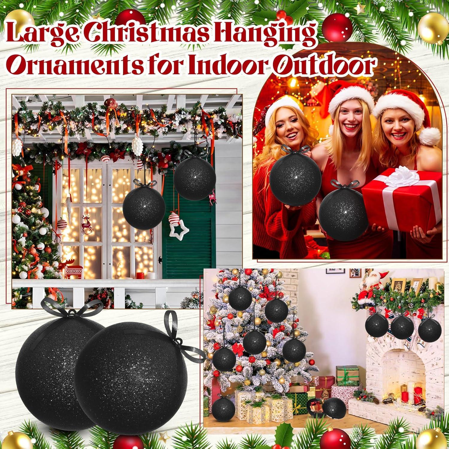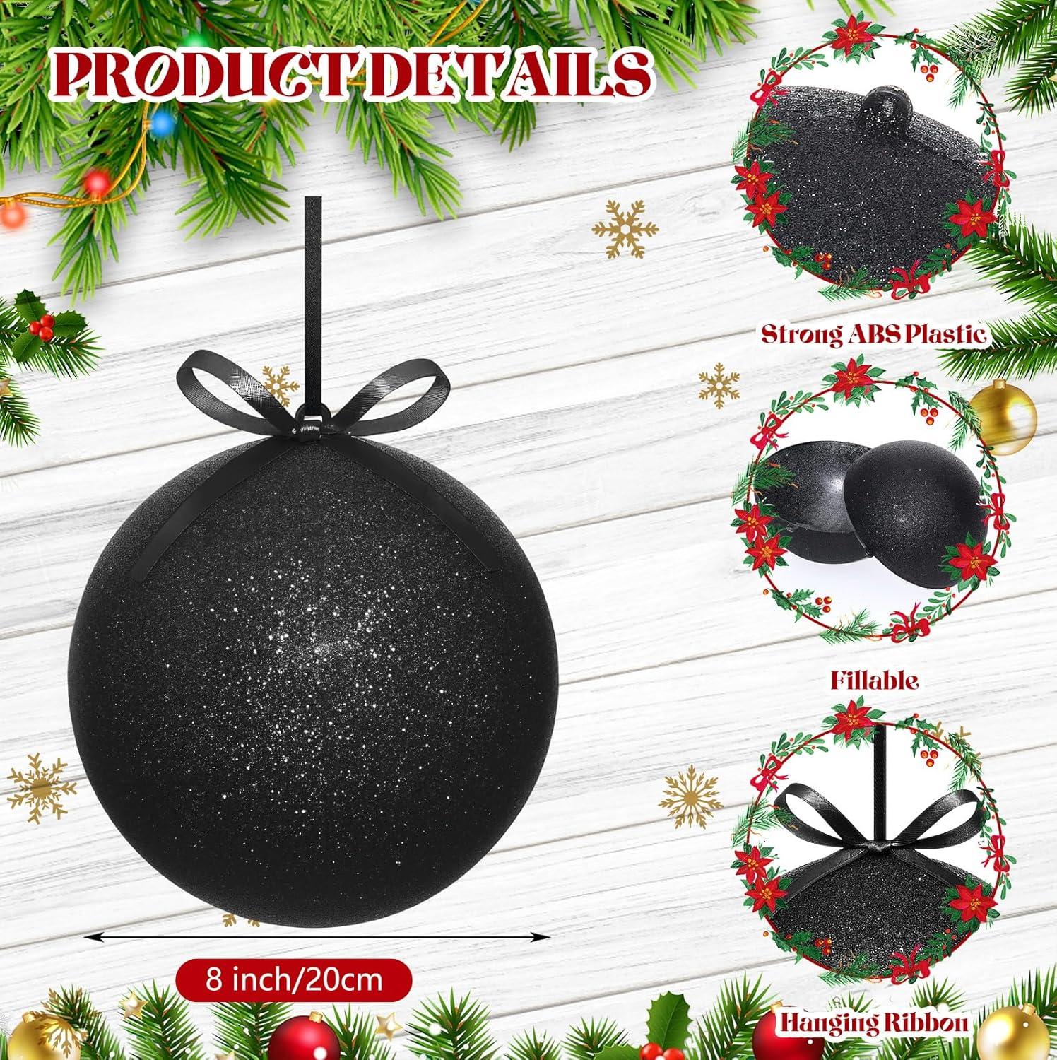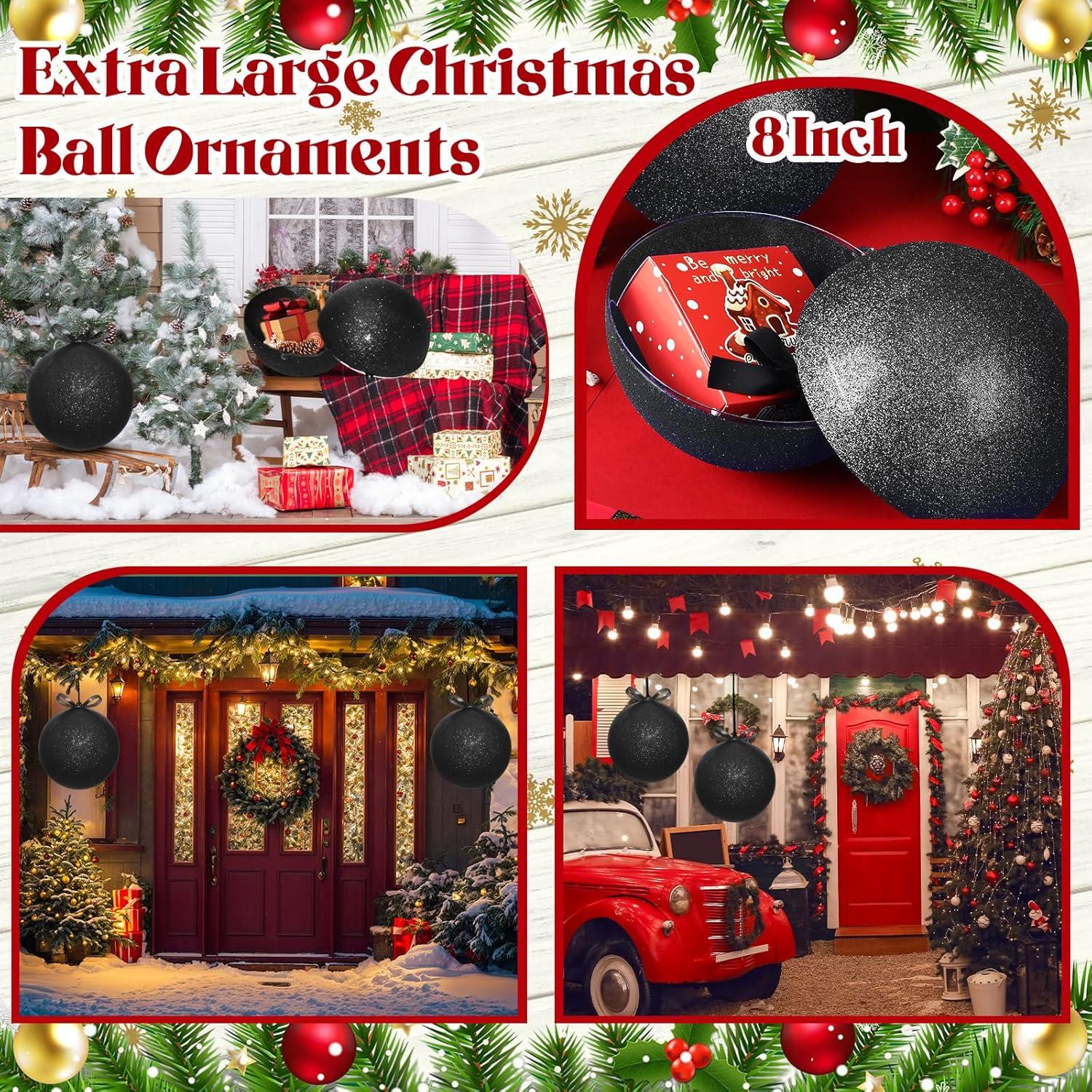 Zubebe 2 Pcs 8" Extra Large Size Christmas Hanging Ball Ornaments Oversized Huge Big Xmas Christmas Plastic Balls for Outside Lawn Yard Tree Hanging Decorations(Glitter Black)(Glitter Black)
