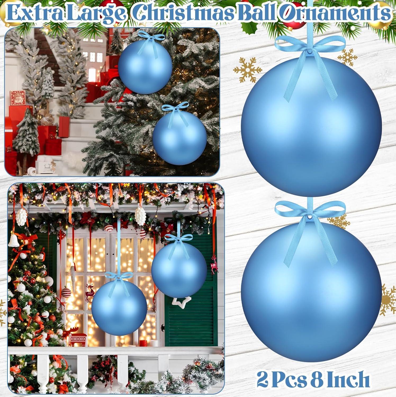 Zubebe 2 Pcs 8" Extra Large Size Christmas Hanging Ball Ornaments Oversized Huge Big Xmas Christmas Plastic Balls for Outside Lawn Yard Tree Hanging Decorations(Glitter Black)(Matte Light Blue)