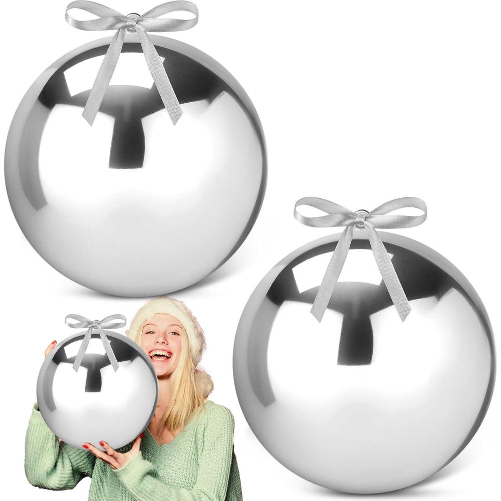 Zubebe 2 Pcs 8" Extra Large Size Christmas Hanging Ball Ornaments Oversized Huge Big Xmas Christmas Plastic Balls for Outside Lawn Yard Tree Hanging Decorations(Glitter Black)(Shiny Silver)