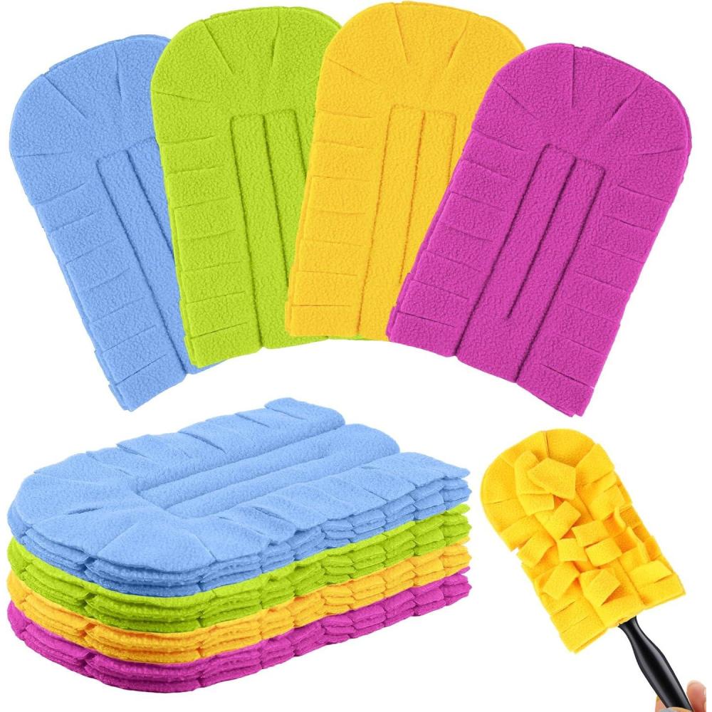 Zubebe 3 Pcs Duster Refill Reusable Fleece Duster Refills Feather Flat Dusters Multi Surface Washable Cleaning Pads Tools for Home, Blinds, Car, Pet, Furniture, Fans (White,Blue,Yellow)(Red yellow Green blue)