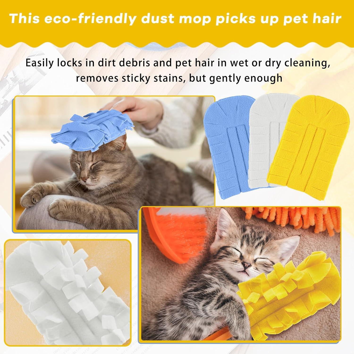 Zubebe 3 Pcs Duster Refill Reusable Fleece Duster Refills Feather Flat Dusters Multi Surface Washable Cleaning Pads Tools for Home, Blinds, Car, Pet, Furniture, Fans (White,Blue,Yellow)(Yellow)