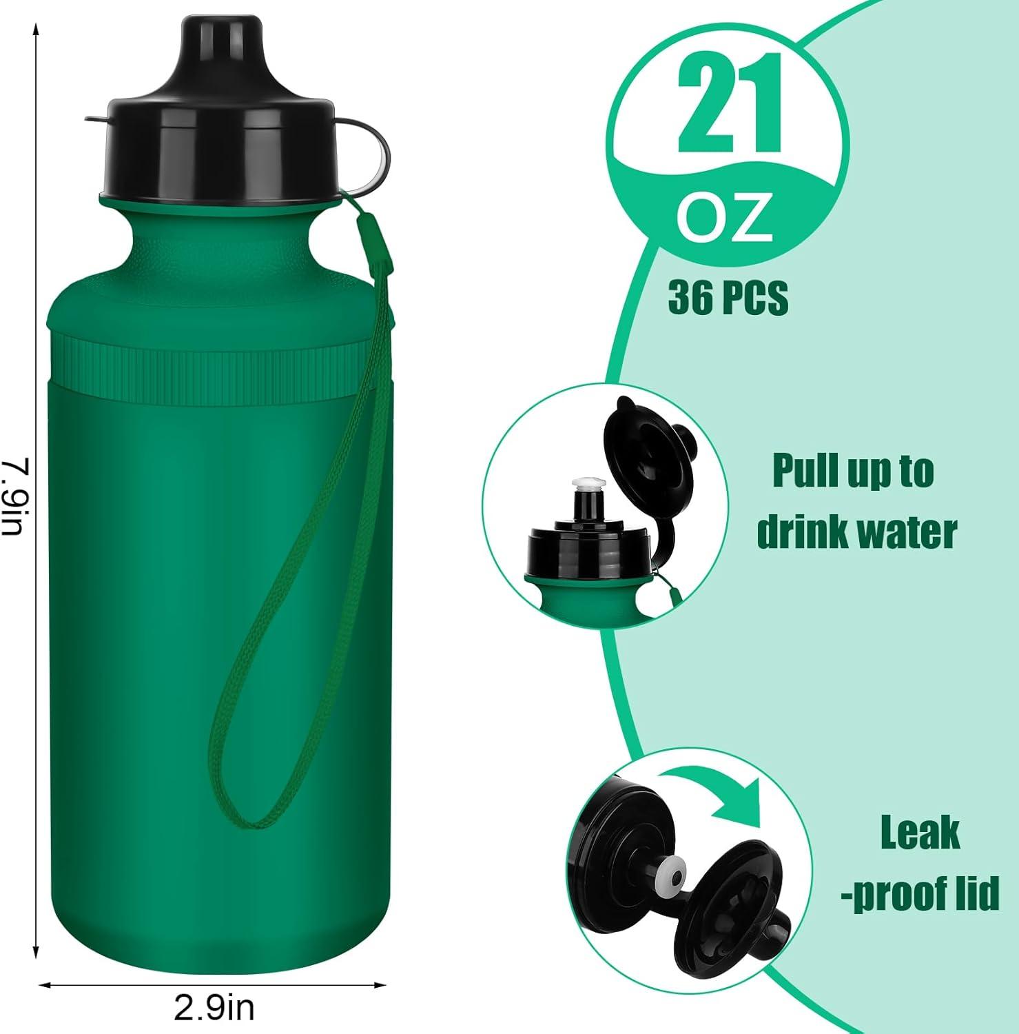 Zubebe 36 Pcs Sport Water Bottles Bulk 21 oz Squeeze Reusable Bpa-free Plastic Water Bottle with Nylon Strap Leak Proof Blank DIY Cup for Travel Hiking Cycling Sport Event Team Gift(Dark Green)
