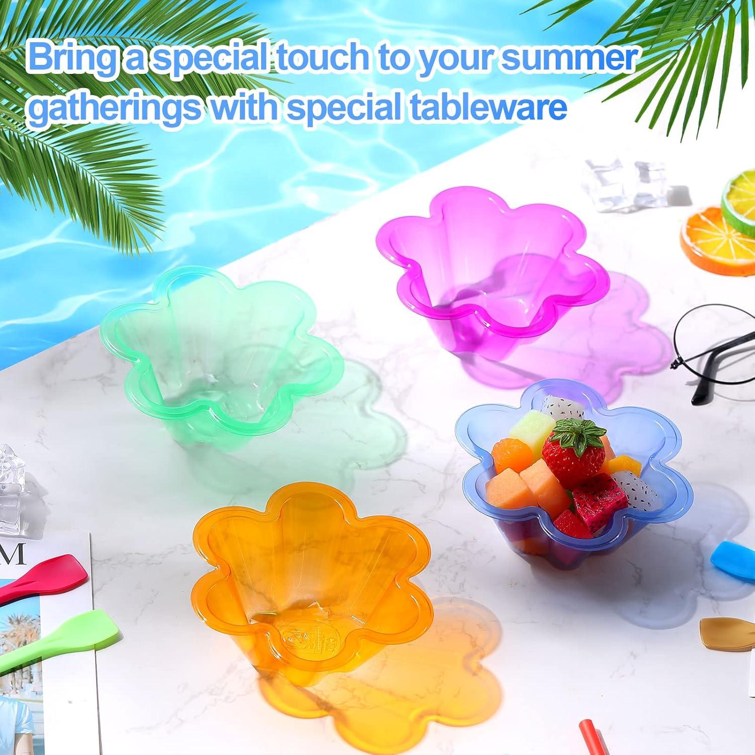 Distinctive Design: mini appetizer cup adopted floral shape design in 4 colors, including rose red, orange, green, blue, which reflect the vibe of summer, adding style and sophistication to your tabletop; It is a practical kitchen tool for party desserts and family gatherings