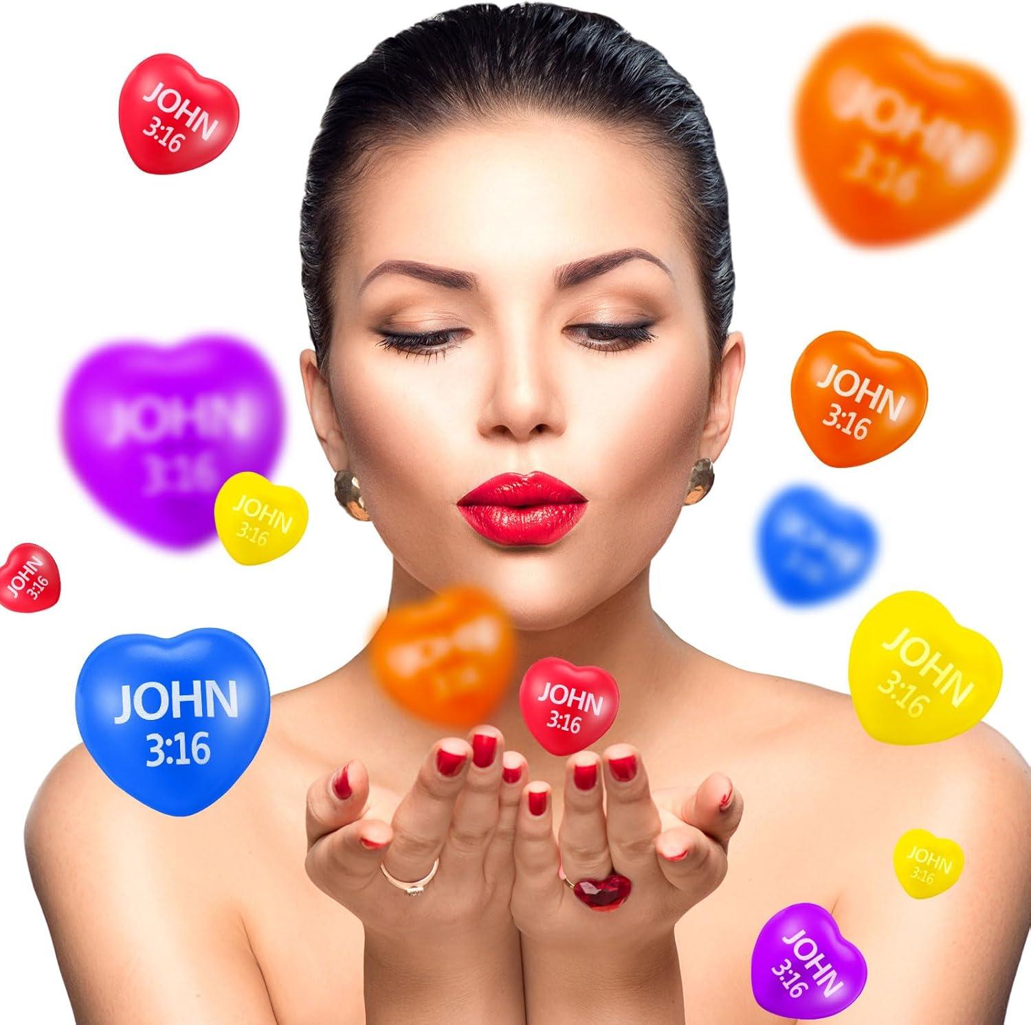 BULK QUANTITY:You will receive 48 pieces of 1.57'' John 3:16 heart-shaped stress balls, nice for distributing to your entire class or group. Ideal as Sunday School prizes, VBS activity gifts, First Communion favors, or Easter basket stuffers