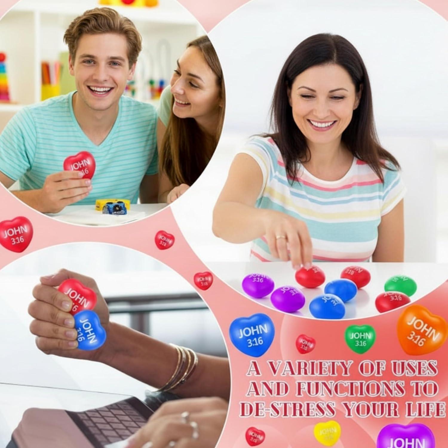 Christian Inspirational Message: each heart stress ball is printed with the powerful scripture ” JOHN 3: 16″, serving as a daily reminder of God's love and grace; More than just a stress toy, it carries a message that inspires faith, hope, and positivity with every squeeze