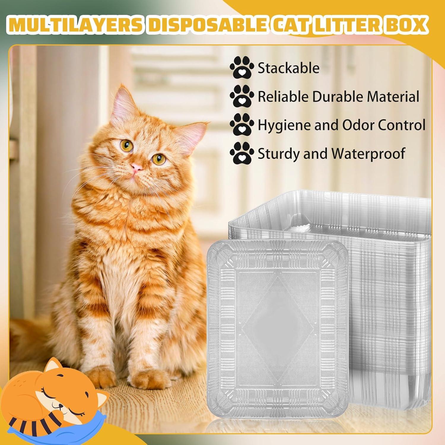 Good Value for Pack: the package consists of 50 disposable cat litter trays, sufficient quantity for daily use and replacement needs; With wide bottom design, they can be stacked and placed, does not take up space