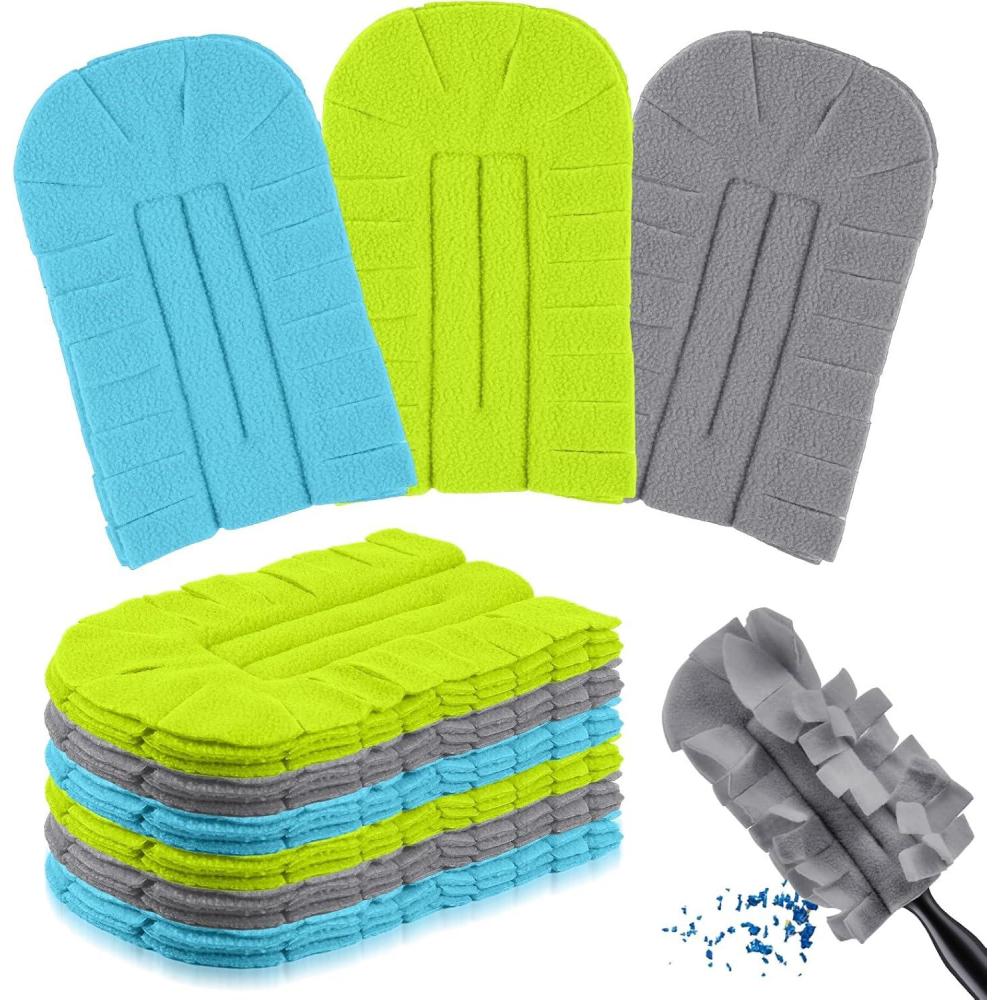 Zubebe 6 Pcs Duster Refill Reusable Fleece Duster Refills Feather Flat Dusters Multi Surface Washable Cleaning Pads Tools for Home, Blinds, Car, Pet, Furniture, Fans (Orange)(Blue green grey)