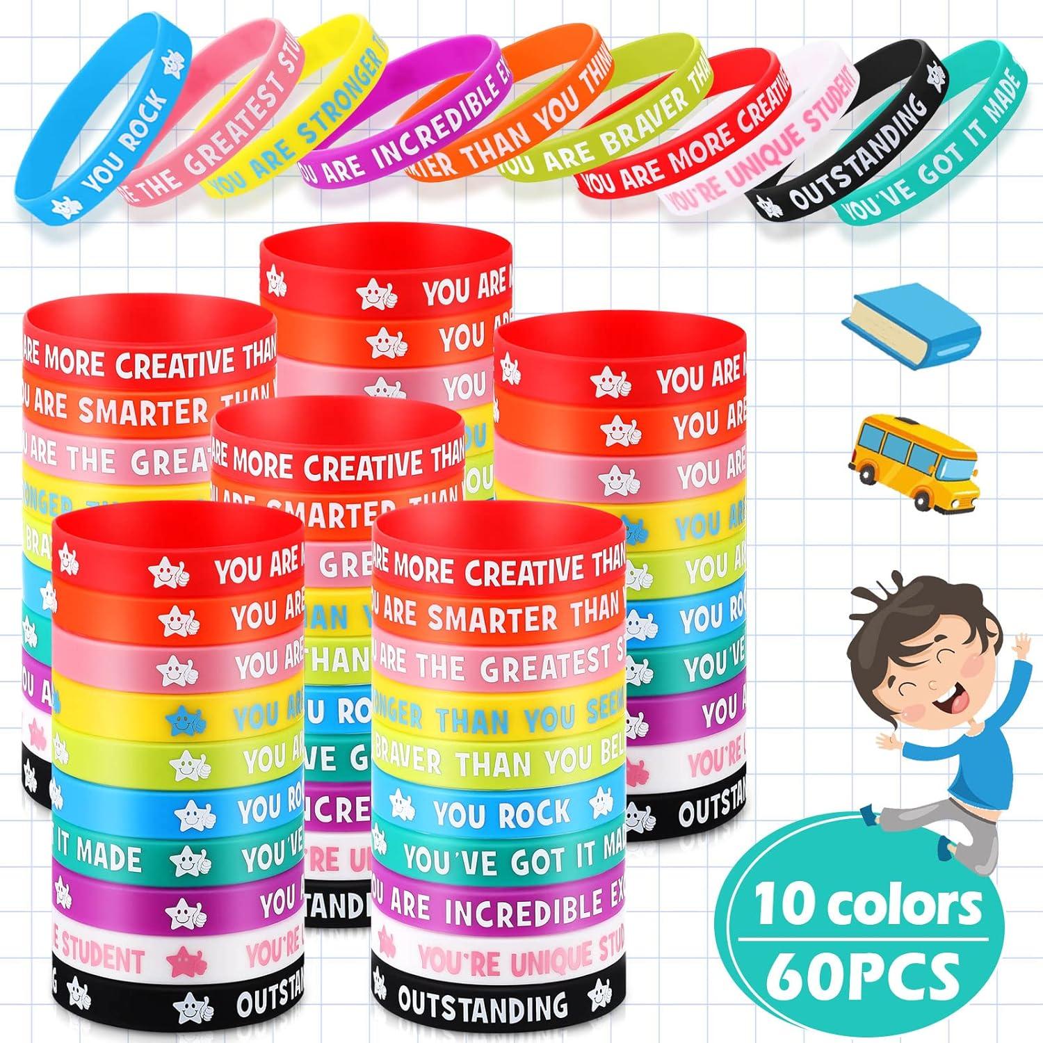 These silicone wristbands for kids can be applied to express your encouragement and care to kids around you, to give them motivation throughout the day, suitable for teachers as gifts for their students as prizes.