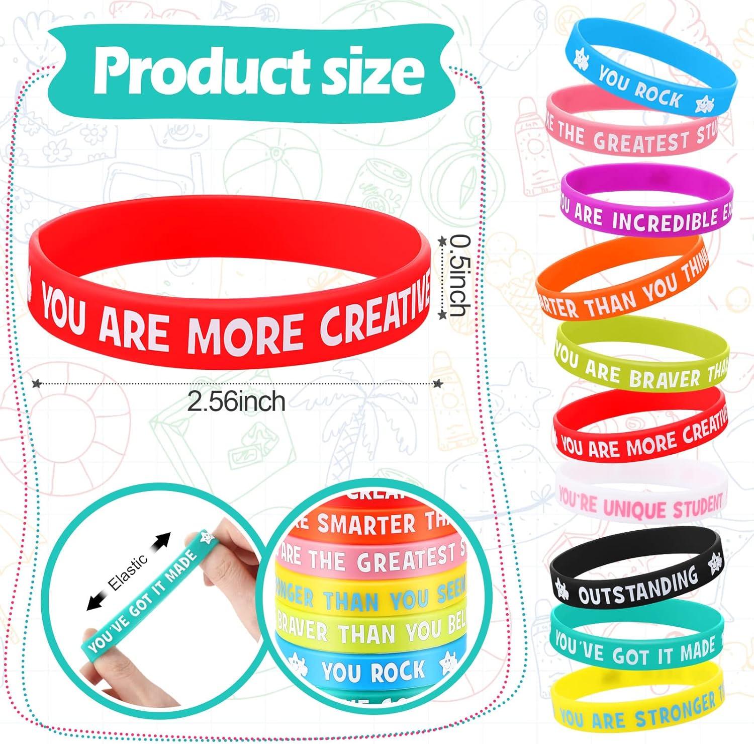 Fit for various occasions: these motivational wristbands are suitable for classroom prizes, school events, student sports, birthday parties, music festivals, family gatherings, carnivals and many other occasions, creating an inspirational atmosphere