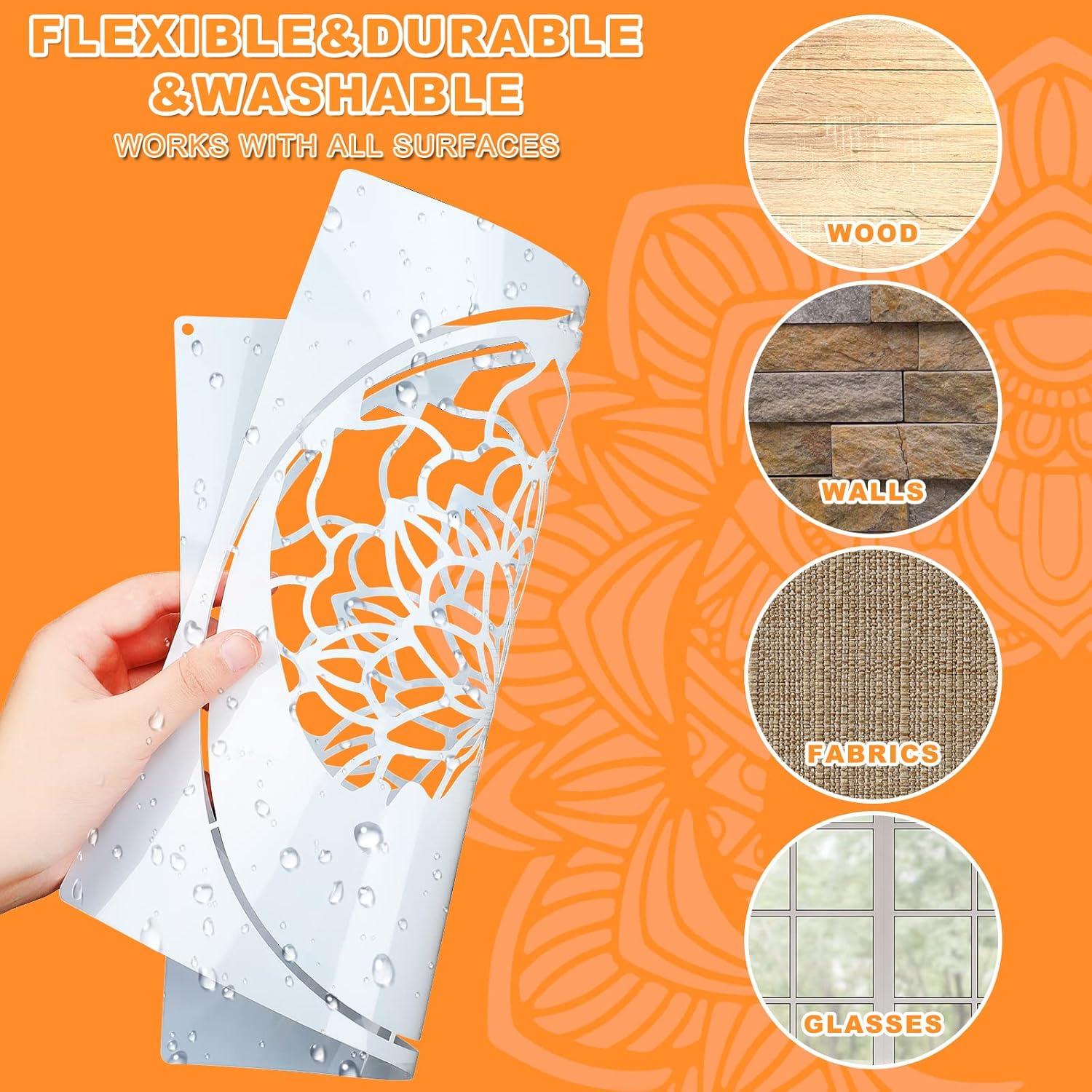 Convenient to Store: each mandala flower sun moon stencil features a round hole on the top, so you can hang them on the wall or other places easily, and the metal open ring in the package will be useful for you, which can bring a lot of convenience for you