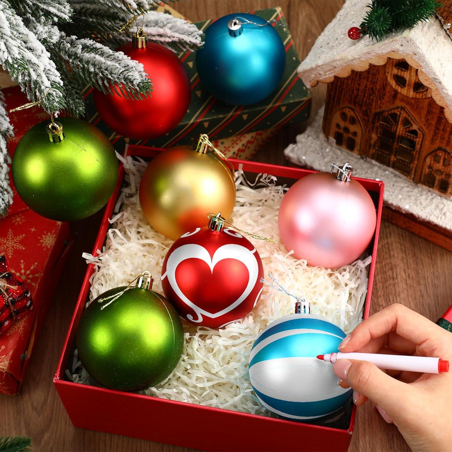 Funny DIY Craft: the surface of Christmas ball ornaments are blank, so you can draw various patterns on them with your imagination, suitable for most kids of different ages, which can stimulate their creativity and develop their hands skills, allowing them to decorate with more possibilities