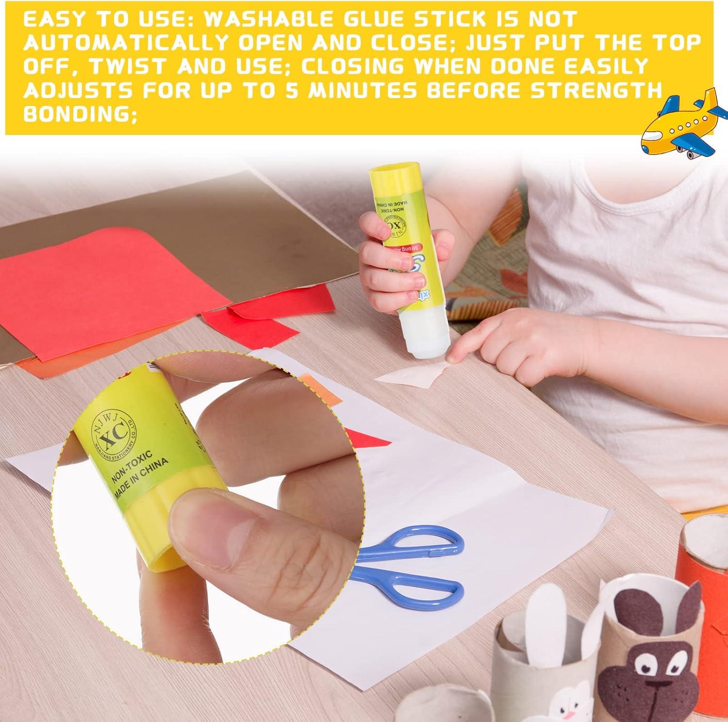 Simple Usage: our washable glue stick can not open and close automatically; You need to put the top off, twist out the glue, and then you can use; Closing when done easily adjusts for up to 5 minutes before strength bonding; Washable glue stick is suitable for school, office, home, art, and more